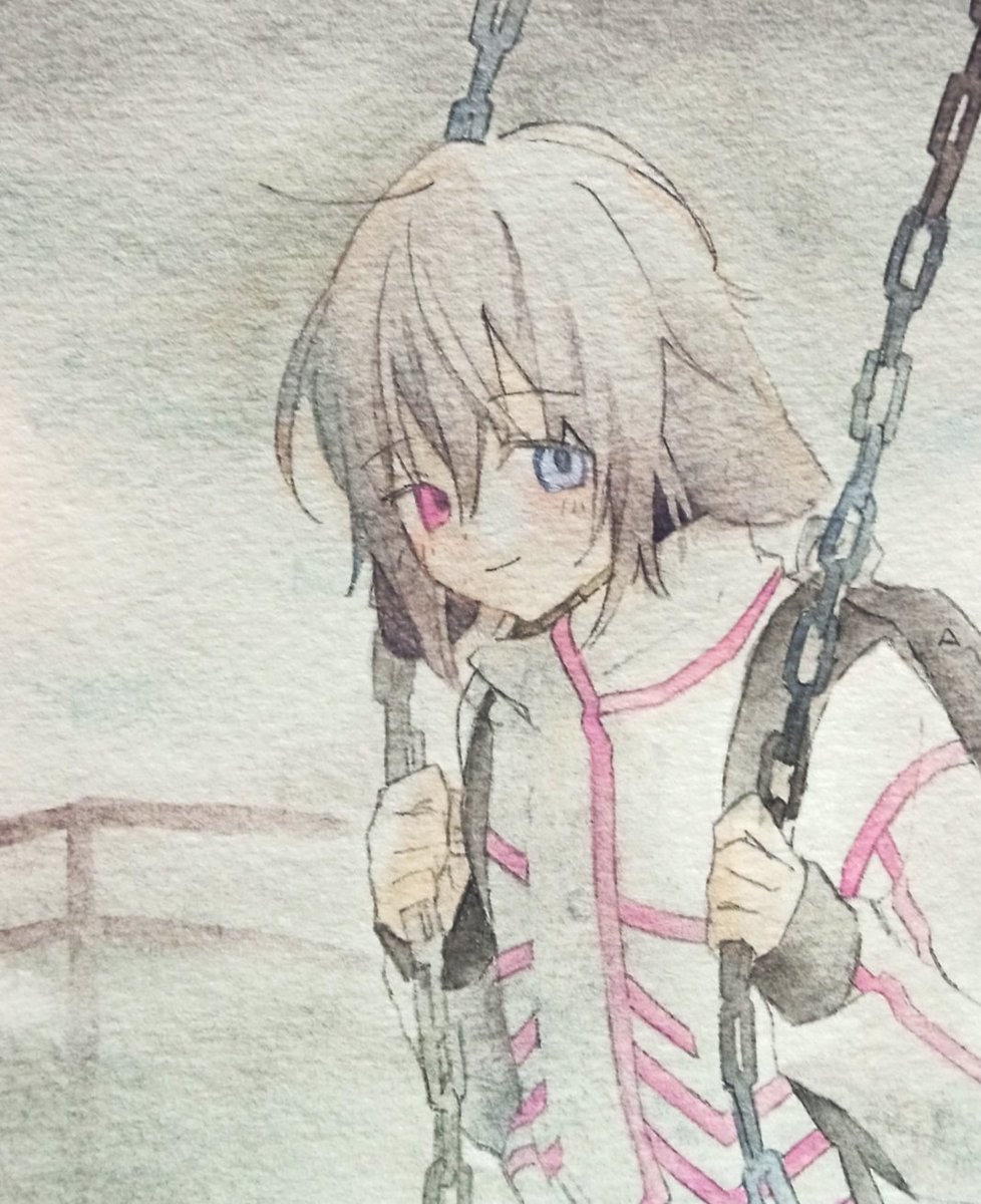 これは同じくティンテッドチャコールで塗った、ブランコに乗ってる無象です。一部だけべつの絵の具も使ってますが。