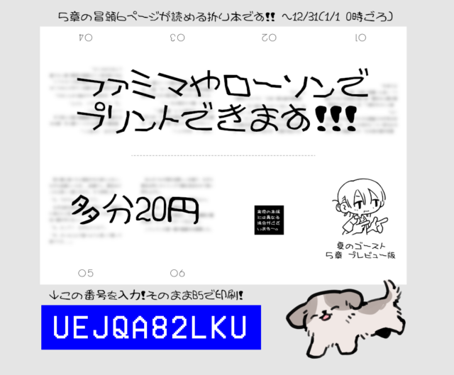 なんのこっちゃってかんじですが、夏ゴの5章(これから実装する続き)の冒頭部分を折り本としてネットプリントに登録してみましたよってかんじです。